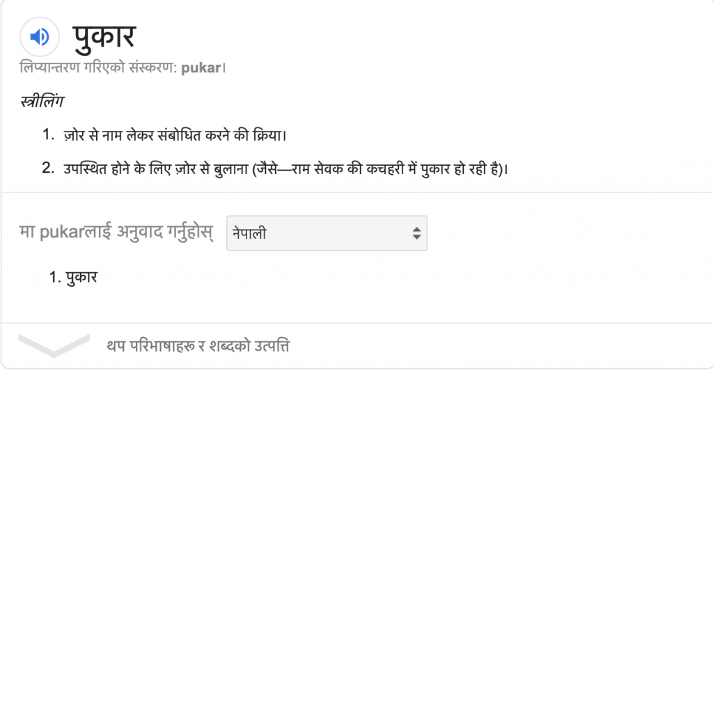 Google Results of Pukar’s meaning.