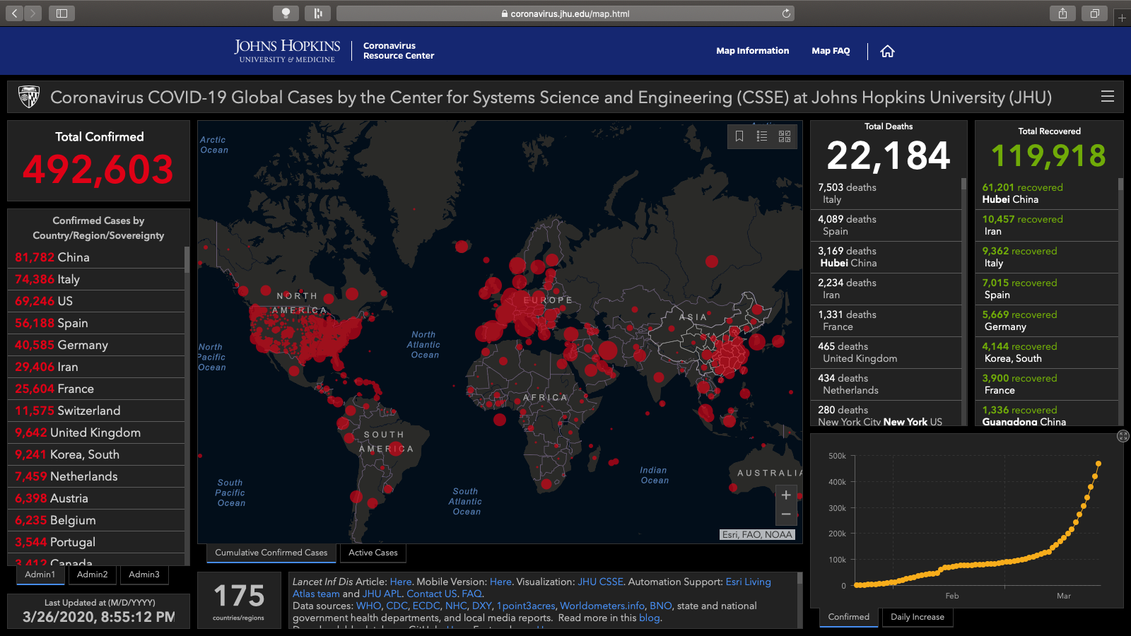 This is a COVID-19 map from Johns Hopkins, Univeristy of Medicine . And THIS my friend — tells a lot about us!